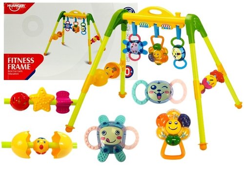 Twoje dziecko jest już za duże na leżenie na matach dołączanych do zestawów? A może posiadacie własną matę, która jest ulubioną Twojego maluszka? Wówczas nie ma powodu do zakupu zestawu z matą - Stojak z grzechotkami jest dla Was idealnym rozwiązaniem! Przenośny stojaczek to świetna zabawka dla dziecka, które uwielbia leżakować! Podwieszane zabawki to świetna rozwiązanie na zajęcie uwagi Twojego dziecka. Po bokach stojaczka umieszczone są grzechotki rotacyjne, które dziecko może obracać. Kolorowe elementy przyciągają wzrok, a górna część może śmiało pełnić funkcje dekoracyjne. Stojak wyposażony jest w dodatkowe stopki, poprawiające jego stabilność. W skład zestawu wchodzą: - Stelaż w kolorach zielonym i żółtym, - Obrotowe grzechotki - Dwie zawieszki w kształcie radosnych stworków - Zawieszka-grzechotka w kształcie kwiatka Wymiary opakowania: 50 cm x 29 cm x 9,5 cm.