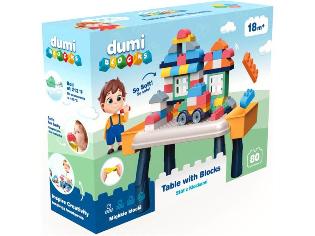 Poznaj miękkie, bezpieczne klocki, z pomocą których najmłodsi stworzą dowolne budowle lub obiekty, wszystko to, co podpowiada im wyobraźnia. Wesołe kolory klocków zachęcają dzieci do budowania, a ich zróżnicowane kształty inspirują do kreatywnego tworzenia! W zestawie znajduje się aż 80 elementów, w tym praktyczny stolik, na którym można składać klocki i eksponować gotowe budowle.