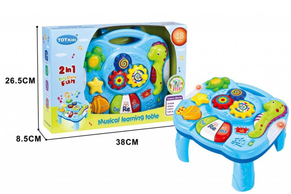 Starannie wykonany stolik edukacyjny dla najmłodszych. Stanowi niezbędny element wyposażenia kącika zabaw każdego malucha. Wyposażony został w szereg elementów takich jak melodyjki , przełączniki czy też światełka zapewniających lepszy rozwój umysłowy dziecka.
