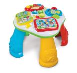 Interaktywny stolik z wieloma aktywnościami stymulującymi słuch i wzrok. Elektroniczna mówiąca zabawka, idealna do nauki pierwszych cyfr, liter, kształtów i kolorów. Pobudza zdolności manualne, słuch i wzrok. Zawiera "panel dotykowy" z interaktywnymi klawiszami. Odtwarzacz muzyki i fortepian gra mnóstwo zabawnych piosenek. Kolorowa książka uczy liter i nazwy zwierząt. Dla dzieci w wieku od 10 do 36 miesięcy.
