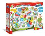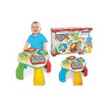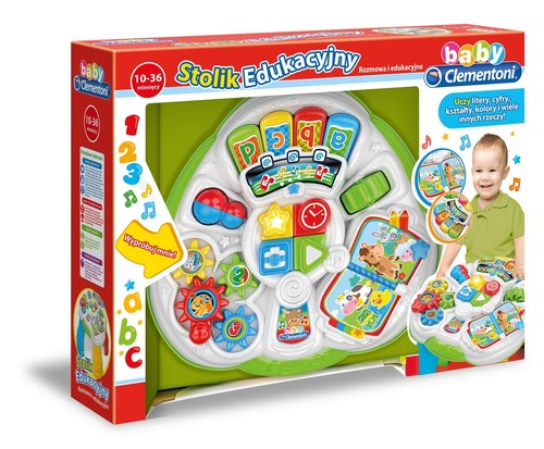 Super-kolorowy stolik z dużą ilością aktywności edukacyjnych, aby nauczyć się cyfr, literek, kształtów i kolorów, nazw zwierząt i dźwięków. Dużo zabawnych efektów świetlnych, wesołych piosenek i rymowanek, aby stymulować zmysły i rozwijać umiejętności manualne u małych dzieci. Książeczka pomaga dzieciom rozpoznawać zwierzęta i ich dźwięki, blat wprowadza je w świat muzyki i uczy pierwszych liter, przekładnie odkrywają pierwsze cyfry i razem z innymi działaniami mechanicznymi, zachęcają do rozwijania swoich umiejętności motorycznych.