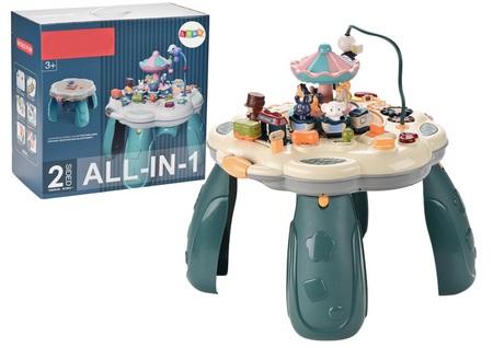 Stolik Interaktywny Edukacyjny Powierzchnia Na Klocki 2w1 Niebieski Interaktywny stolik edukacyjny 2w1 w kolorze niebieskim to wszechstronna zabawka, która zapewnia maluchom godziny edukacyjnej i kreatywnej zabawy. Ten innowacyjny stolik łączy w sobie różne funkcje, które rozweselą każde dziecko i pomogą w nauce przez zabawę. Stolik oferuje wiele interaktywnych funkcji, które angażują dziecko w różnorodne aktywności. Dzięki efektom świetlnym i dźwiękowym, stolik przyciąga uwagę malucha i stymuluje zmysły, co sprzyja rozwojowi zdolności sensorycznych i poznawczych. Co wyróżnia ten stolik, to jego funkcjonalność 2w1. W standardowej formie stolik oferuje różnorodne interaktywne zabawy, ale jego prawdziwa wszechstronność ujawnia się, gdy zdejmiesz część interaktywną. Po ściągnięciu górnej części, stolik przekształca się w płaską powierzchnię do układania klocków. Zestaw zawiera również klocki, które idealnie pasują do nowo utworzonej powierzchni roboczej. To umożliwia dzieciom rozwijanie zdolności manualnych, kreatywności i koordynacji ruchowej podczas układania i budowania. Dzięki temu funkcjonalnemu designowi, stolik może rosnąć razem z dzieckiem, dostosowując się do jego zmieniających się potrzeb i umiejętności. Możliwość przekształcenia stolika w przestrzeń do zabawy klockami sprawia, że jest to inwestycja na dłużej, która zapewnia różnorodność zabaw i stymuluje rozwój dziecka. Stolik edukacyjny 2w1 w kolorze niebieskim to doskonały wybór dla każdego malucha, który ceni sobie zabawę połączoną z nauką. Jego interaktywne funkcje, efekty świetlne i dźwiękowe oraz możliwość transformacji sprawiają, że jest to zabawka, która rozweseli każde dziecko i wspiera jego rozwój na wielu płaszczyznach. Stolik zasilany jest na baterie 4x 1.5V AA, które nie są elementem zestawu: Wymiary stolika: 43cm x 43cm x 46cm Wymiary opakowania: 45,5cm x 44cm x 24cm Posiada certyfikat CE, ponadto jest zgodny z normą EN71. Przeznaczony dla dzieci powyżej 3 roku życia.