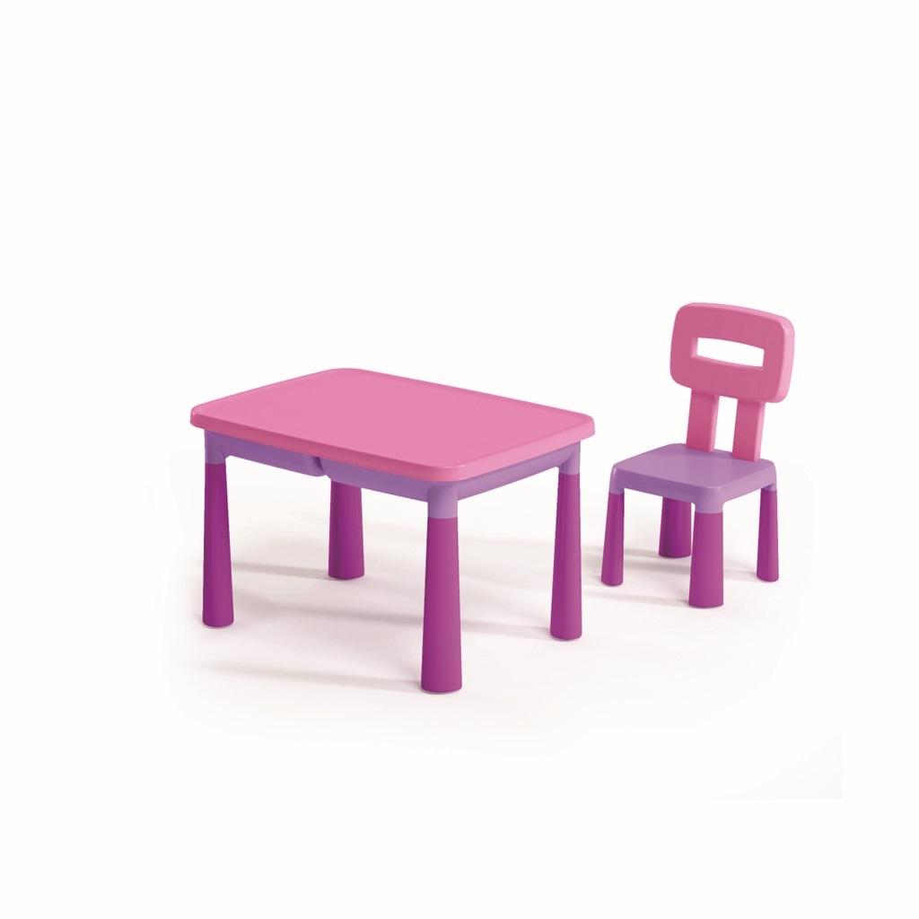 Jest to niezbędny zestaw mebelków w każdym dziecięcym pokoju, który może okazać się przydatny przy niemalże każdej zabawie. Zestaw sprawdzi się doskonale przy rysowaniu kredkami, malowaniu farbami lub nawet układaniu puzzli. Komplet może posłużyć również do spożywania posiłków. Zestaw mebli jest niezwykle prosty w montażu oraz w późniejszym przechowywaniu, gdyż po skończonej zabawie wystarczy wszystko rozmontować i schować w pojemniki, które znajdują się pod blatem! Dzięki takiemu rozwiązaniu zestaw zajmuje bardzo mało miejsca. Pojemniki pod blatem mogą również posłużyć do przechowywania kredek czy farb podczas zabawy. Zestaw mebli sprawdzi się doskonale w domu ale również w ogrodzie, a dzięki niewielkiej wadze, jest niezwykle poręczny i łatwy do przenoszenia. Solidna konstrukcja wykonana z wysokiej jakości tworzywa sztucznego zapewni dzieciom zabawę na wiele długich lat.