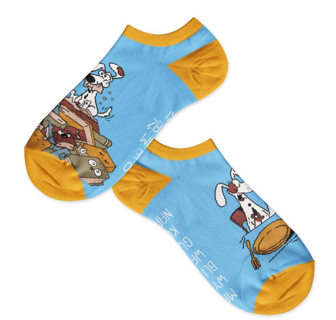 Stopki dla pożeracza książek, który ma wysublimowany gust kulinarny... A na stopach wyjątkowe skarpetki. Nic tak nie zaostrza apetytu, jak świeżutka książka. Jeśli również jesteś koneserem dobrej lektury i masz wysublimowany gust kulinarny, to zdecydowanie są skarpetki w sam raz dla Ciebie. Wpadną w oko każdemu molowi książkowemu, dlatego idealnie sprawdzą się też w roli prezentu. Życie jest za krótkie, żeby nosić nudne białe skarpetki Wyprodukowane w Polsce
