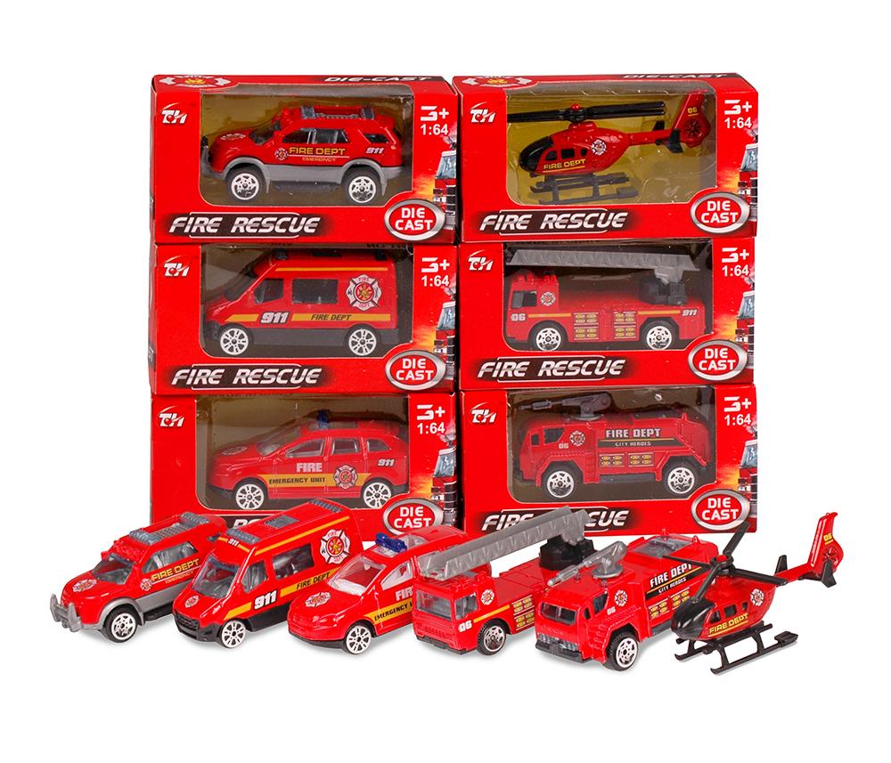 AUTO STRAŻ, METAL, 6 WZORÓW, PULL BACK, SKALA 1:64