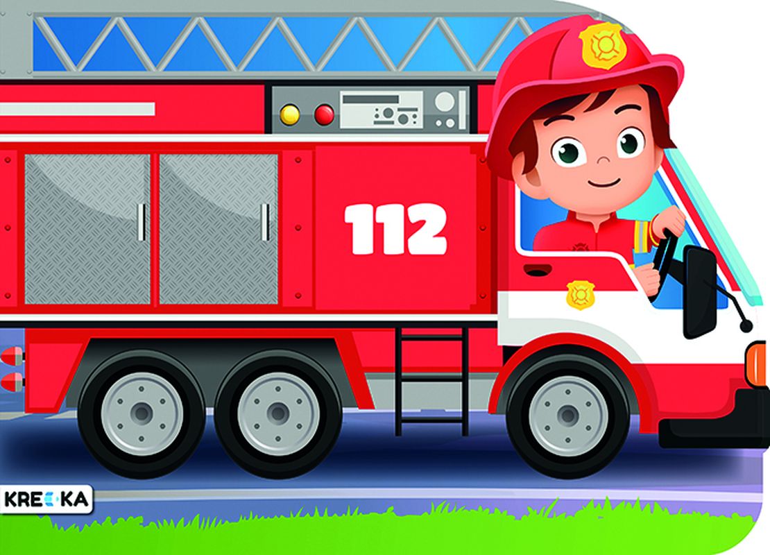 Kolorowanka w kształcie wozu strażackiego - zachwyca kształtem, tematycznymi ilustracjami i podpowiada, jak działają służby ratunkowe. Książeczka zawiera naklejki.