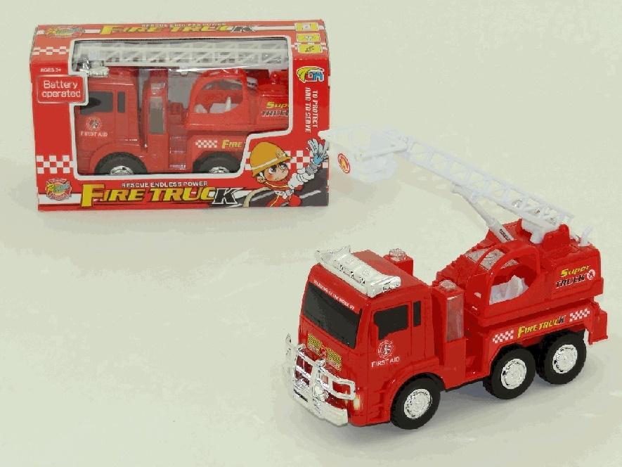 Smochód straży pożarnej, iluminacja świetlna, dźwięk syreny, automatycznie podnoszona drabina.