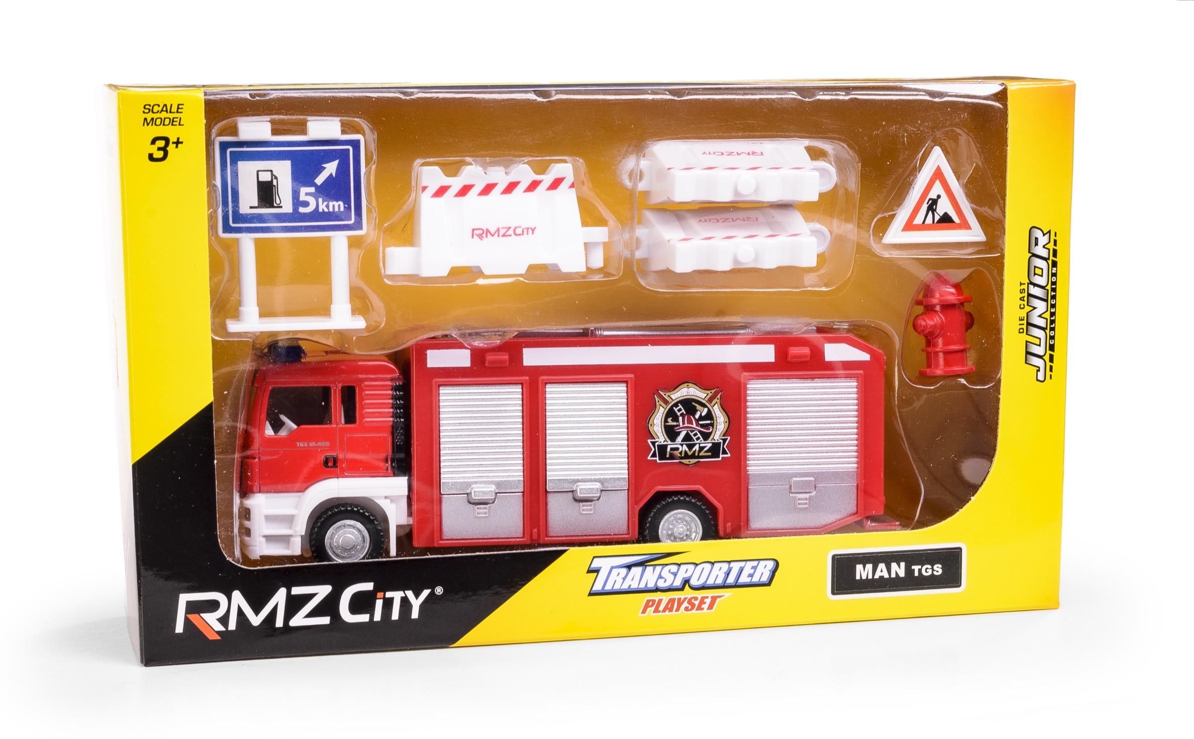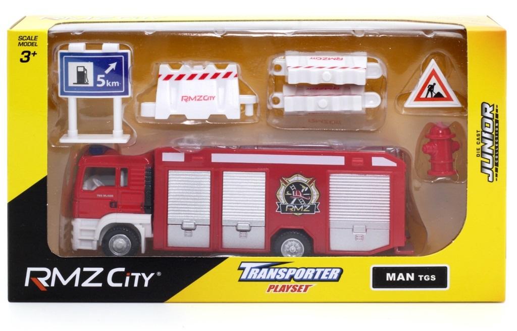 1:64 Zestaw straż pożarna + znaki drogowe + ogrodzenie zabezpieczająca