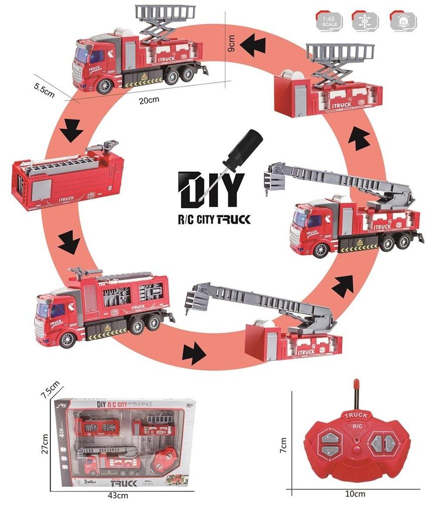 Straż pożarna zdalnie sterowana z pilotem RC ze zmiennymi karoseriami.
