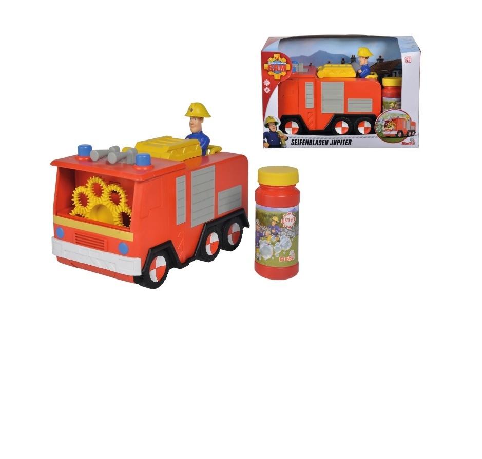 Maszynka do robienia baniek w kształcie straży pożarnej z Strażaka Sama wraz z jego figurką i płynem do uzupełniania.