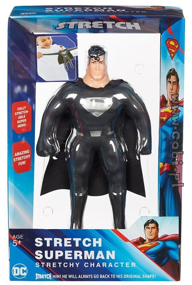 Duża, oryginalna, super rozciągliwa i super elastyczna figurka Superman. Superman, superbohater szybszy niż pędząca kula, potężniejszy niż lokomotywa Człowiek ze stali toczy niekończącą się bitwę o prawdę i sprawiedliwość! Baw się Supermanem w wersji Stretch! Figurka jest super rozciągliwa i wytrzymała. Chwyć ją za dłonie i stopy i ciągnij! Zobacz, jak niesamowicie figurka się rozciąga! Figurka ma wysokość 25 cm i można ją rozciągnąć aż do 90 cm! Kiedy puścisz figurkę, używa swoich niesamowitych właściwości, aby powoli powrócić do swojego normalnego kształtu. Baw się świetnie tym super rozciągliwym i super elastycznym Supermanem!