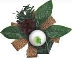 Stroiki świąteczne 10cm na jutowej wstążce z szyszką, listkami i białą styropianową bombką 3szt.