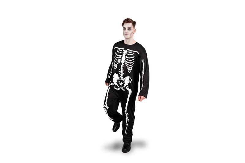 Strój Kościotrup w kolorze czarno-białym, rozmiar L. Skład: poliester - 100%. Sposób konserwacji: prać ręcznie.