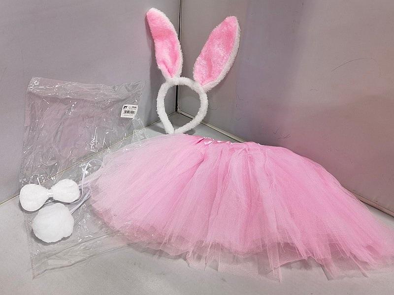 Strój Króliczek różowy: opaska z uszami, ogonek i spódniczka
