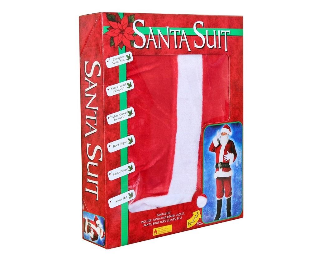 Strój Mikołaja (czapka, bluza, spodnie, broda, pasek, nakładki na buty, rękawiczki) rozm. un.