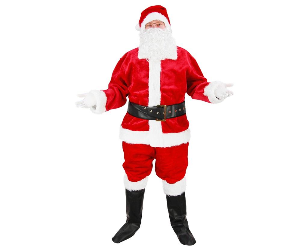 Strój Mikołaja (czapka, bluza, spodnie, broda, pasek, nakładki na buty, rękawiczki, okulary) rozm. un.