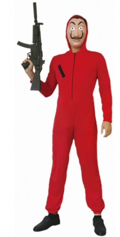 Strój dla dorosłych. Strój zawiera: kombinezon i maskę. Rozmiar: Wymiary kombinezonu: Długość całkowita kombinezonu: ok. 154 cm (bez kaptura) Szerokość w ramionach: 55 cm Szerokość pod pachami: ok. 60 cm Długość rękawa: 65 cm Szerokość w pasie: ok. 47 cm bez rozciągania (Po rozciągnięciu ok. 79 cm). Długość nogawki: 81 cm Materiał: 100% poliester. Wymiary maski: Długość: 25,5 cm Szerokość: 16,5 cm Maska mocowana za pomocą gumki.
