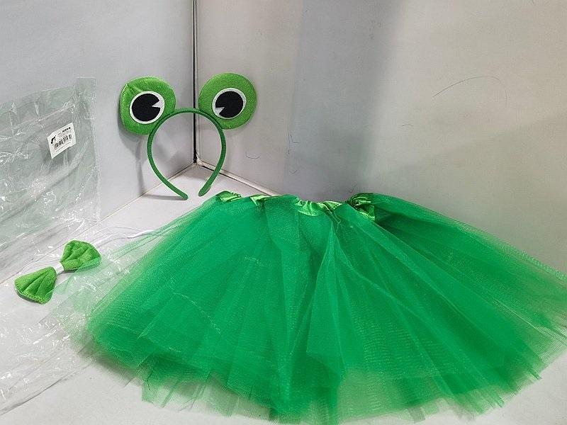 Strój Żabka zielona: opaska z uszami, ogonek i spódniczka