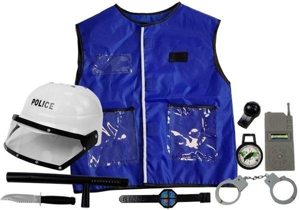 Prezentowany strój policyjny podbije serce nawet najmniejszego bohatera. Pozwoli wcielić się w członka rodziny wykonującego ten zawód, a także przygotować się do swojej pracy marzeń. Przebranie sprawdzi się nie tylko podczas wesołych zabaw w domu, ale i na przebieranych urodzinach czy balu karnawałowym. Chłopiec w stroju władzy zaprowadzi porządek podczas wszystkich zabaw. Ten kompletny niezbędnik dla każdego prawdziwego policjanta z akcesoriami jest świetnie wykonany, co widać nie tylko w jakości, ale i odwzorowaniu realnych przedmiotów. Produkt wiekowo odpowiedni jest dla dzieci powyżej 3. roku życia. Kamizelka policyjna posiada kieszenie, zapinana się na rzepy.