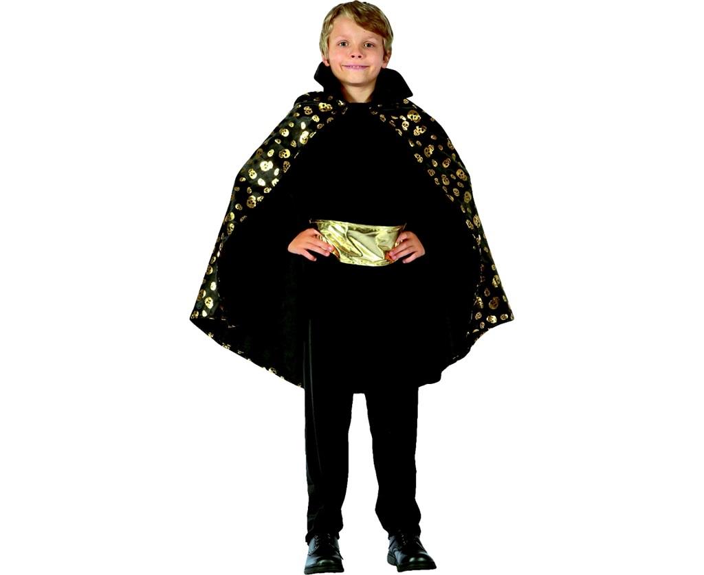 Czarna peleryna wykończona złotymi czaszkami, zapinana na rzepy.