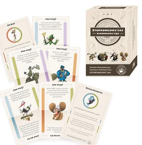 Idea robienia komuś KU-KU doczekała się publikacji w postaci stupromilowej karcianki pod znamiennym tytułem Alkoholowy Ciąg. Wykładając karty, tworzysz sposób w jaki kolejny gracz ma się napić. Być może będzie musiał popłynąć jak rekin z płynem w ustach, albo w kilka sekund zdjąć sobie skarpetki popijając trunek. Totalnie absurdalna gra karciana z kultowej serii Stupromilowy Las. 58 kart postaci, które przeniosą Cię w najwyższy poziom abstrakcji imprezowej.
