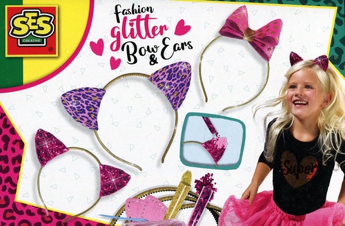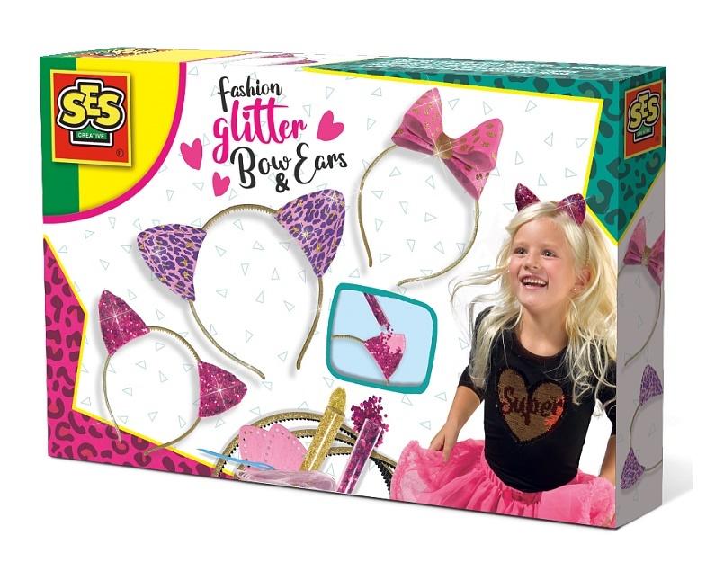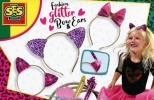 Stwórz własną brokatową opaskę Zestaw zawiera wszystko, co potrzebne do utworzenia trzech tiar: dwoje błyszczących kocich uszu i duży łuk Zabawka dla dzieci w wieku 5+
