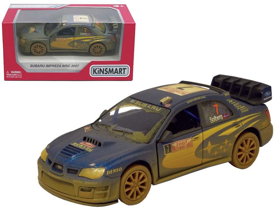 Auto KINSMART subaru impreza wrc 2007 zabłocony 1:36 Metalowy model auto bardzo dobrej jakości z napędem wstecznym, otwieranymi drzwiami z oficjalną licencją.