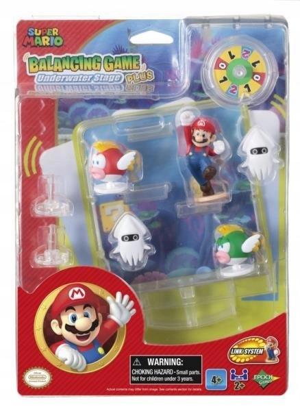 Super Mario Balancing Game Plus Underwater Stage to prosta gra zręcznościowa. Polega ona na ustawianiu figurek na platformach zgodnie ze wskazaniami na kole szczęścia. Konstrukcja musi przez cały czas zachowywać równowagę, inaczej figurki spadną. Aby przejść poziom, potrzeba zręczności i szczęścia. Gra zawiera 4 figurki Super Mario i jedno koło szczęścia można je również wykorzystać we wszystkich innych grach EPOCH Super Mario z oznaczeniem Link System. Graj. Kolekcjonuj. Łącz. Super Mario Balancing Game Plus Underwater Stage można łączyć z innymi elementami Plus Stages (Sky, Desert) w jedną dużą konstrukcję Balancing Stage. Jest ona przeznaczona dla 2 lub większej liczby graczy. Zalecany wiek od 4 roku życia.