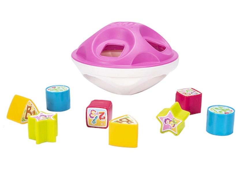 Super Sorter w kształcie dysku ma 8 klocków o różnych kształtach i kolorach. Dziecko poprzez zabawę uczy się kształtów, zależności zdarzeń, rozwija wyobraźnię.