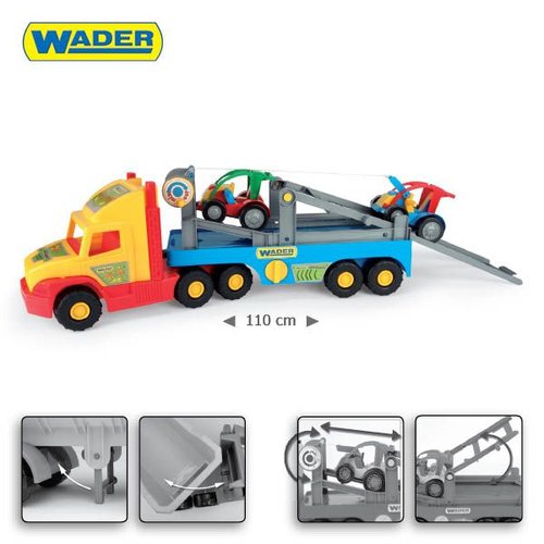 Duża, wytrzymała, a przede wszystkim bezpieczna zabawka dla dziecka, nadająca się do zabawy zarówno w domu, jak i na zewnątrz. Pojazd posiada wiele ruchomych elementów, które urozmaicą zabawę np. ruchome podjazdy na lawecie. Dodatkowo w zestawie znajdują się dwa autka z serii Buggy, barierki, pachołki oraz wycinanki, tj. znaki drogowe i sygnalizacja świetlna. Całość wykonana jest z wysokiej jakości tworzywa sztucznego, odpornego na warunki atmosferyczne, dzięki czemu zabawkę przez cały rok można przechowywać np. w ogródku czy na balkonie. Zabawka dla dzieci od 3 roku życia.