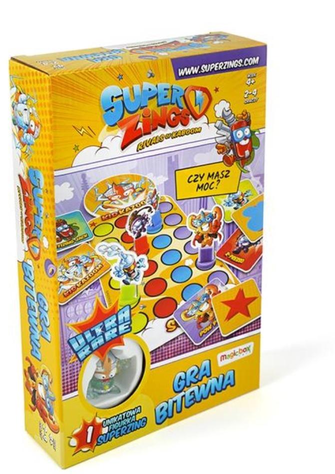 Opakowanie zawiera planszę do gry, karty mocy oraz kolorowe pionki z bohaterami, a także unikatową figurkę Super Zings. Gra dedykowana jest dla dzieci powyżej 4 roku życia. W rozgrywce może wziąć udział od 2 do 4 osób.