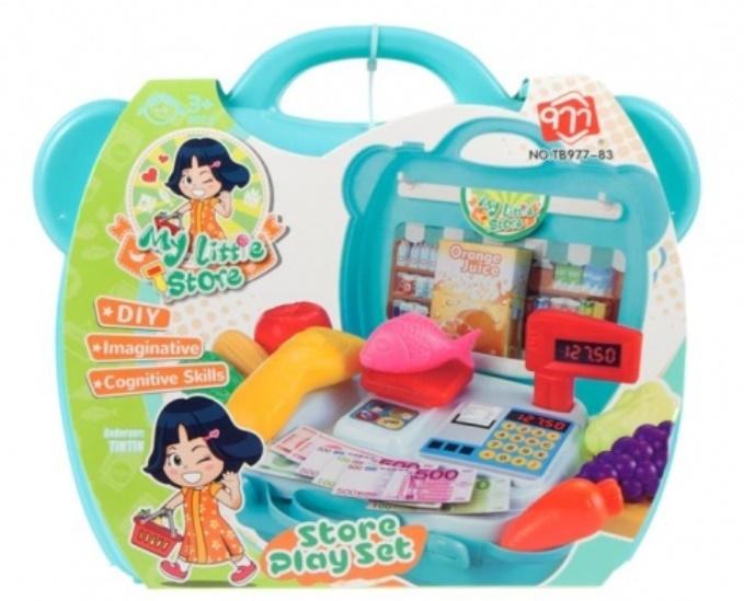 Supermarket z akcesoriami w walizce