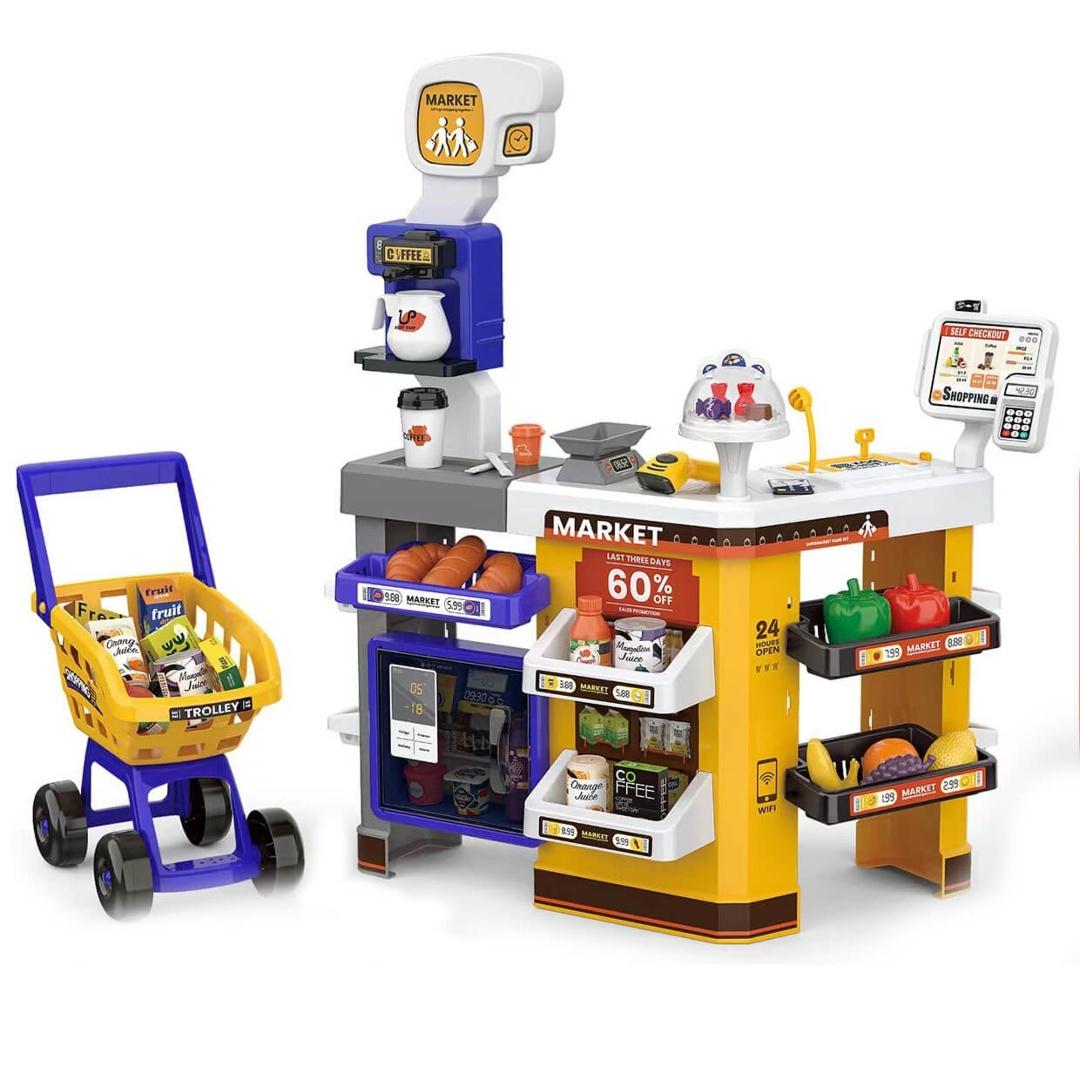 Dzieci uwielbiają naśladować dorosłych, a zabawa w sklep to jedna z ich ulubionych aktywności. Ten duży supermarket dla dzieci pozwala odgrywać scenki zakupów, obsługi klientów i płacenia za produkty. W zestawie znajduje się wózek na zakupy, kasa fiskalna, skaner, waga, ekspres do kawy oraz wiele produktów spożywczych. Dzięki temu dziecko może tworzyć własne scenariusze zabawy, bawić się samodzielnie lub razem z rodzeństwem i rodzicami.