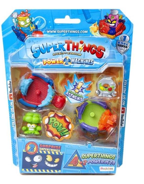 Witaj w Kaboom City, mieście SuperThings. Odkryj ten wyjątkowy blister, w którym znajdują się aż dwa różne PowerJets oraz 4 różne figurki SuperThings z serii Power Machines (jedna z nich to kapitan w kolorze srebrnym!).