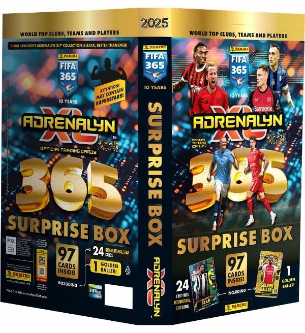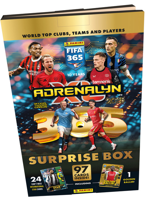 Panini FIFA 365 Adrenalyn XL™ w 2024 świętuje jubileusz dziesięciolecia! Kolekcja prezentuje najlepsze drużyny i gwiazdy największych światowych lig piłkarskich, a także nowe treści, kategorie kart i specjalne materiały, co sprawia, że zawsze każdego roku ta kolekcja jest ekscytująca! Począwszy od obiecujących graczy Rising Stars po uznanych piłkarzy Top Masters, Panini FIFA 365 Adrenalyn XL™ zawiera wszystko czego może oczekiwać fan piłki nożnej a nawet więcej! Cała kolekcja zawiera ponad 400 kart z wizerunkami piłkarzy, wydrukowanych na różnych materiałach. W skład kolekcji wchodzą również karty z limitowanej edycji. Opakowanie zawiera 24 okienka w których znajdują się karty specjalne w saszetkach lub pojedynczo.