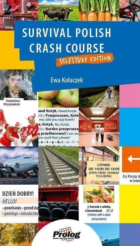 W zestawie: książka, 2 płyty mini CD z nagraniami mp3 (nagrania do kursu i fiszek, również z możliwością pobrania plików mp3 ze strony www, przy pomocy dołączonego do zestawu kodu), 100 fiszek perforowanych z tłumaczeniem na język angielski i niemiecki, całość zapakowana w pudełko, zafoliowana.Survival Polish Crash Course jest idealny dla tych którzy:- nigdy nie uczyli się polskiego, ale zawsze chcieli,- chcą przyjechać do Polski i językowo przetrwać :)- chcą się przygotować leksykalnie do typowych sytuacji w kawiarni, taksówce, w Survival Crash Course znaleźć można ciekawostki i rady dotyczące realiów polskich związanych z kuchnią, komunikacją itp.mają już wstępne wiadomości o języku polskim i chcieliby je usystematyzować oraz zaktywizować (proste, jasne komentarze gramatyczne, usystematyzowane tabele).