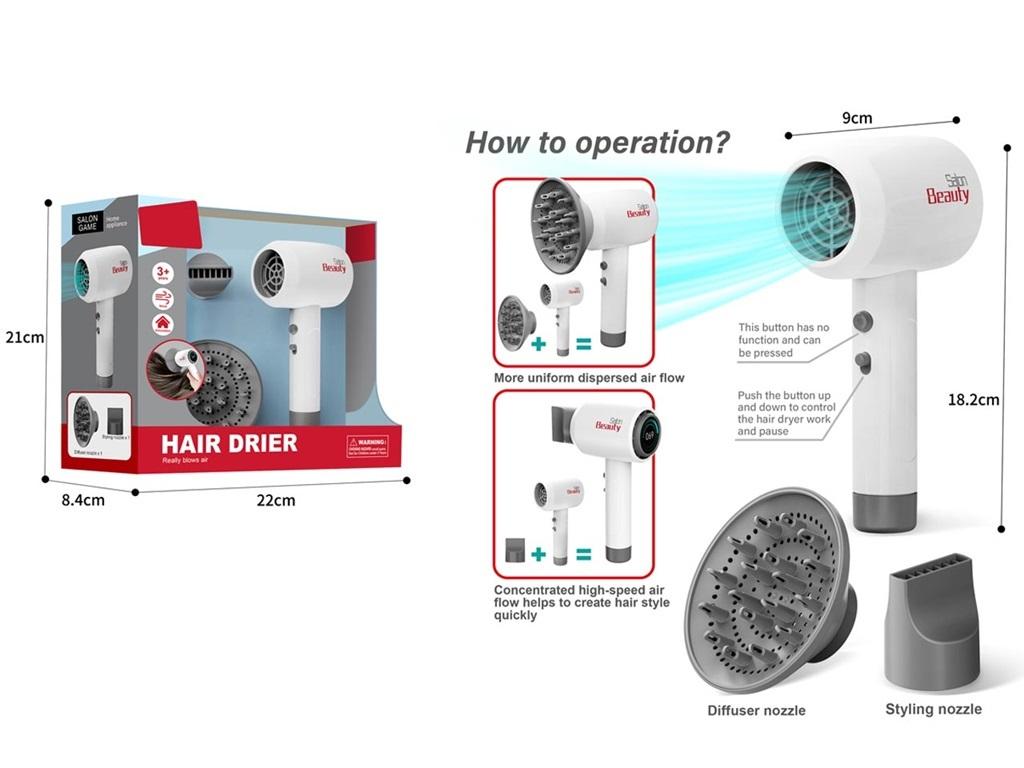Suszarka z dyfuzorem, zasilanie: 1xAA (baterie nie są załączone)