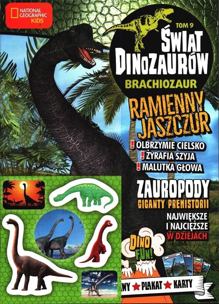Świat Dinozaurów Brachiozaur Ramienny jaszczur Zauropody - giganty prehistorii Ciekawostki, naklejki, zabawy, plakat, karty