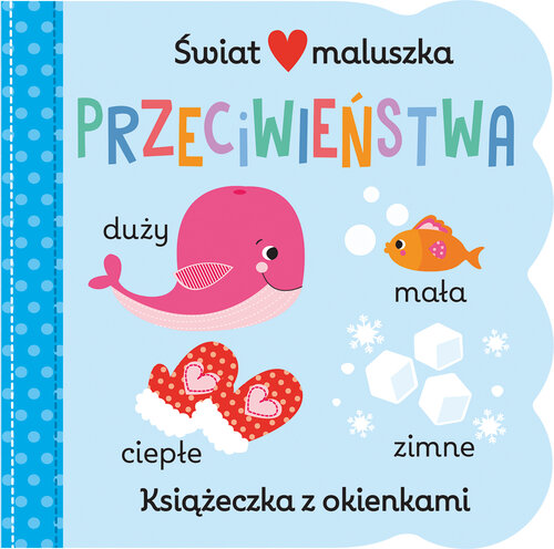 Książeczka dla najmłodszych dzieci z okienkami oraz prostymi ilustracjami uczy i bawi – pozwala poznać przeciwieństwa, rozwija koordynację wzrokowo-ruchową i zachęca do nauki mowy.