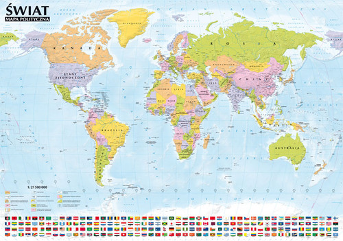 Świat.Mapa pol. i krajobrazowa 1:21 500 000 listwa