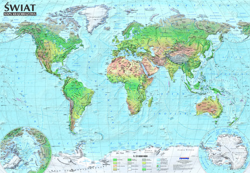 Świat. Mapa polityczna i krajobrazowa dwustronna mapa ścienna 1:31 000 000