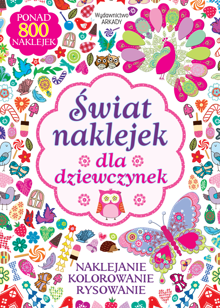 96 stron rozmaitych scenek, ozdobnych wzorów, zabawnych zwierząt i wyszukanych strojów można kolorować kredkami, flamastrami, ozdabiać wymyślnymi esami-floresami, a przede wszystkim uzupełniać 800 naklejkami. Tworzenie niezwykłych bransoletek, ozdabianie pysznych ciast albo dobieranie wzorów na skrzydłach motyla gwarantuje świetną zabawę na długie godziny. Ta książka to idealny prezent dla każdej twórczej dziewczynki w wieku powyżej 4 lat.