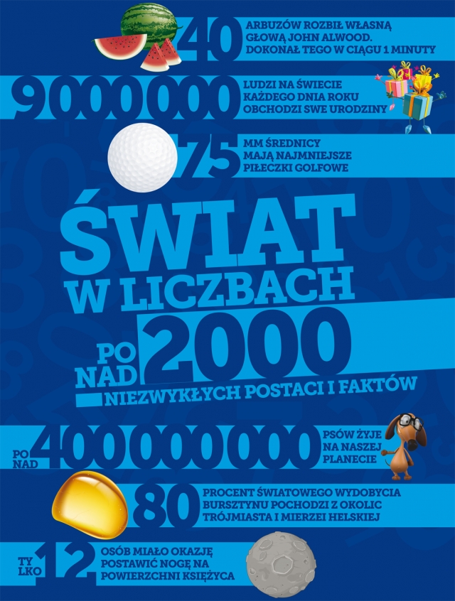 Świat w liczbach to książka prezentująca ciekawe fakty i wydarzenia w liczbach. W książce znalazły się tematy związane z nowymi technologiami i mediami, historią, a także przyrodą.