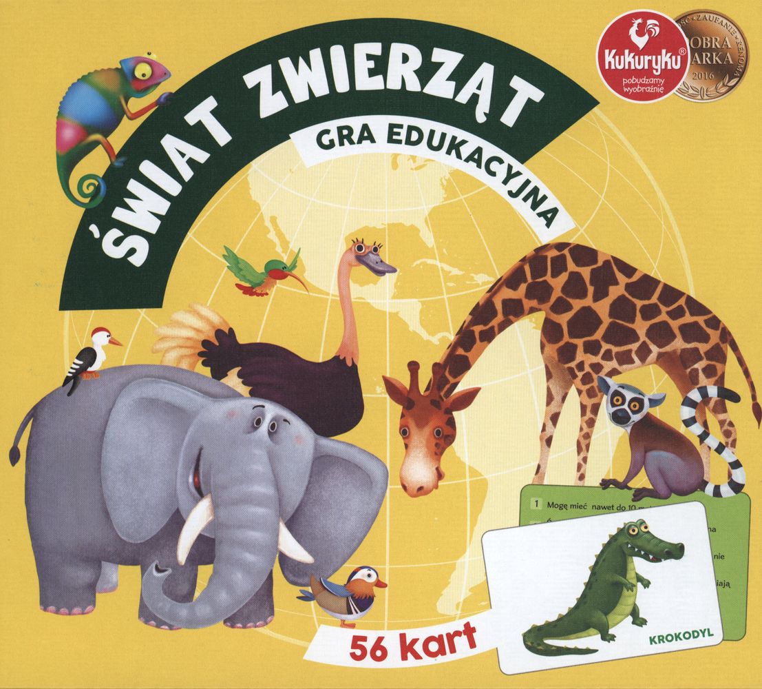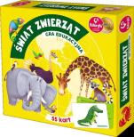 Świat zwierząt to gra w której uczestnicy muszą wykazać się wiedzą o tematyce przyrodniczej. Oprócz odpowiedzi na zagadki, gracze mają do złożenia bajecznie kolorowe puzzle, które tworzą mapę świata ze zwierzątkami.