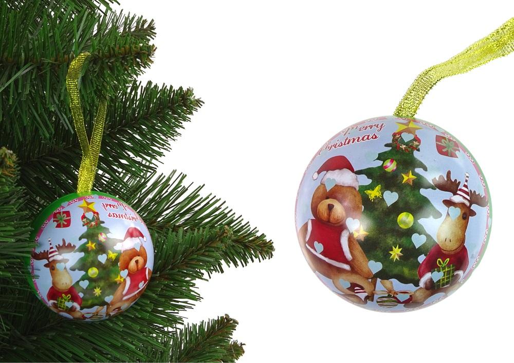 Świąteczna Bombka Metalowa Ozdoba Na Choinkę Misie Renifer Czas Świąt to magiczny czas , gdzie cały dom wygląda obłędnie i przytulnie. Każdy w swoim domu chce stworzyć przytulny kącik do spędzania czasu z rodziną. Każdy element jest wtedy ważny, a najlepiej, aby odnosił się do panujących wtedy świąt Bożego Narodzenia. Przedstawiamy bombkę, która może stanowić także opakowanie dla prezentu znajdującego się w środku. Okrągła ozdoba otwierana jest na dwie połówki, a w środku posiadamy pustą przestrzeń, w której możemy schować słodycze bądź biżuterie. Sznureczek zamontowany w niej daje możliwość także zawieszenia na choince. Bombka przedstawia duże pluszowe misie przy świątecznie ubranej choince. Sprawmy, by ten czas był wyjątkowy w każdym aspekcie! Średnica bombki: około 7 cm Wymiary opakowania: 10 cm x 10 cm x 7 cm Dla dzieci powyżej 3 roku życia. Zabawka z normą EN71 i certyfkatem CE.