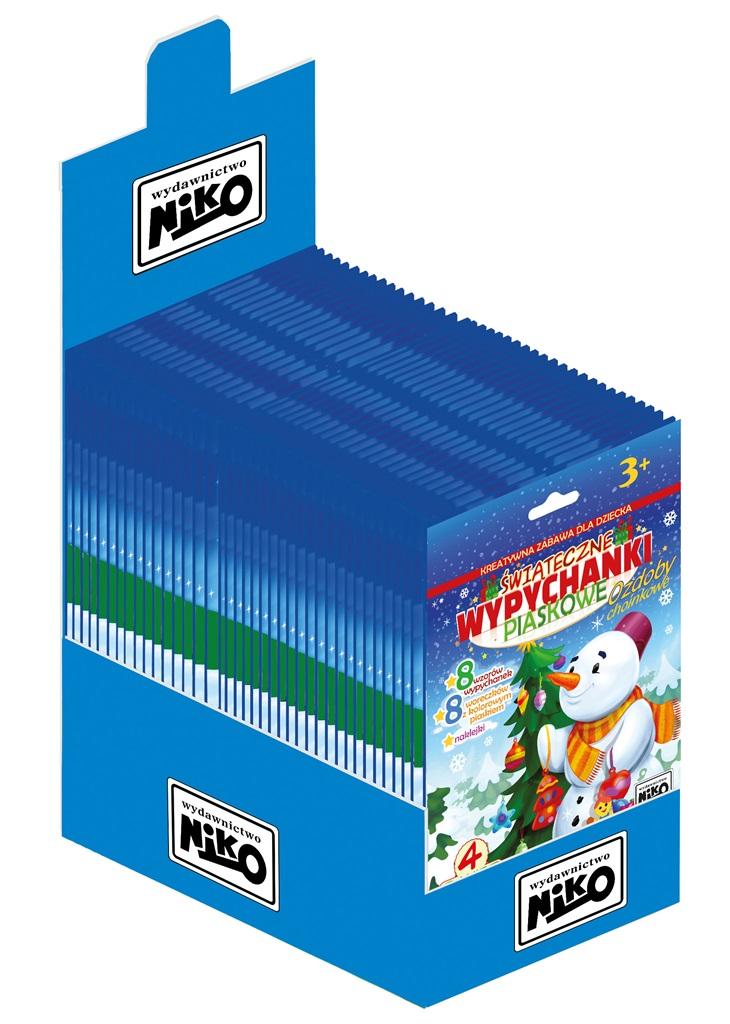 ŚWIĄTECZNE WYPYCHANKI PIASKOWE Piaskowe wypychanki rozwijają kreatywność i zdolności manualne. Każdy może stworzyć swoją niepowtarzalną dekorację na święta. Wystarczy wypchnąć ozdobę z szablonu, odkleić i posypać piaskiem wybrany fragment i z tyłu przykleić naklejkę. W każdym pakiecie wypychanek są dwa tekturowe szablony formatu 160x200 mm z czterema ozdobami każdy, 8 kolorów piasku, patyczek i 8 naklejek.
