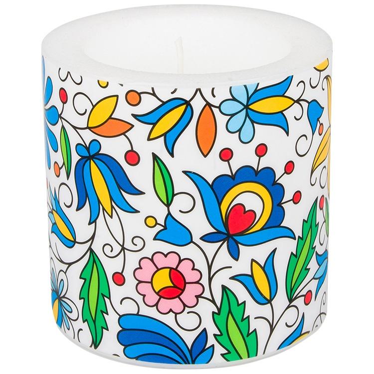 Dekoracyjna świeca lampion FOLK z ludowym wzorem z kaszubskich haftów: