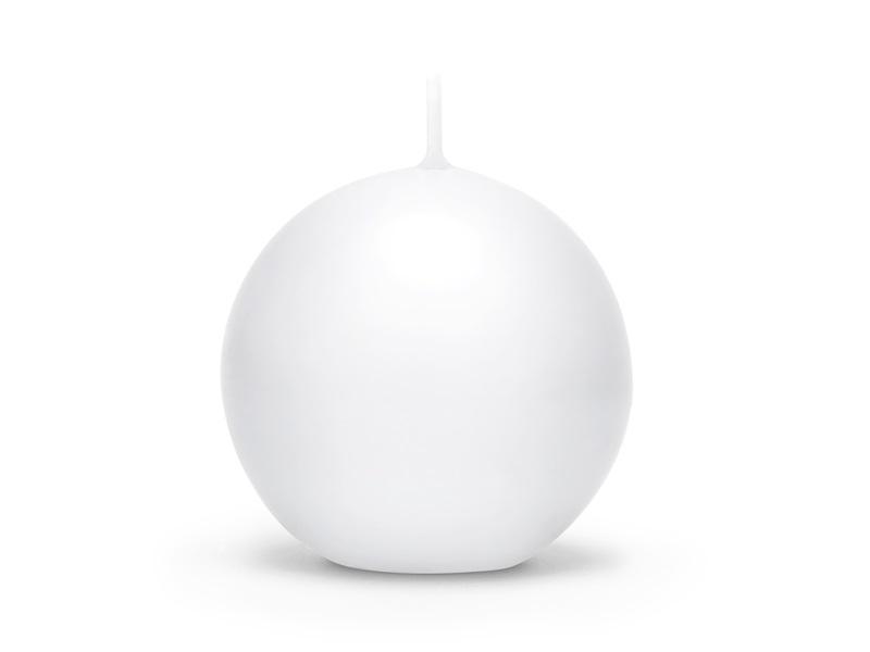 Świeca matowa Kula w kolorze białym, średnica 8 centymetrów. Czas palenia 1 sztuki około 20 godzin.(1 op. / 6 szt.)