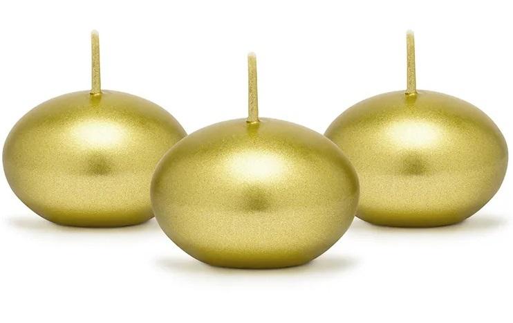 Świeca pływająca Dysk, metalizowana, w kolorze złotym, rozmiar ok. 4 cm. Czas palenia 1 sztuki ok. 2 godziny.