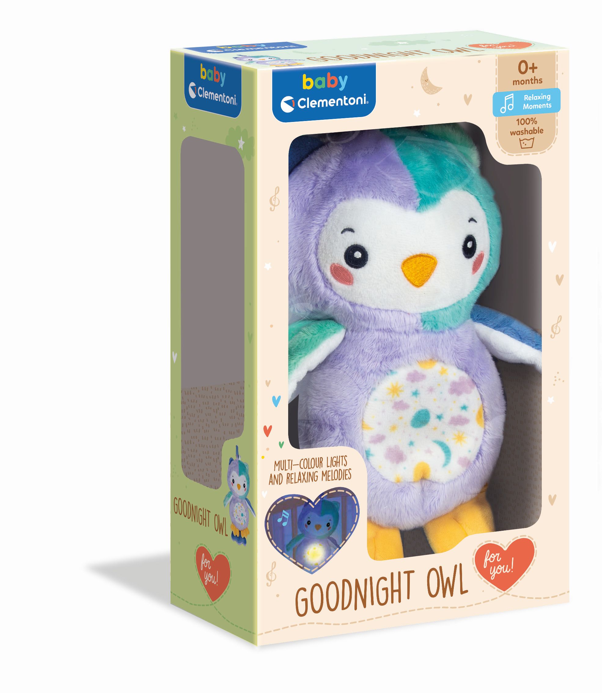 Świecący brzuszek tej uroczej sówki zapewnia dziecku w nocy przyjemne poczucie bezpieczeństwa. Zaprojektowana po to, aby pomóc Twoim najmłodszym dzieciom poradzić sobie z trudnymi emocjami, takimi jak strach przed ciemnością, zapewniając im poczucie spokoju, komfortu i odprężenia. Urocze melodie opracowano specjalnie po to, aby zapewnić dziecku dobre samopoczucie, ukołysać je do snu i towarzyszyć mu, kiedy stopniowo wchodzi do krainy snów. Dzięki wygodnemu klipsowi i paskowi można ją przymocować do łóżeczka lub zabrać w dowolne miejsce. Funkcja „wypróbuj mnie”.